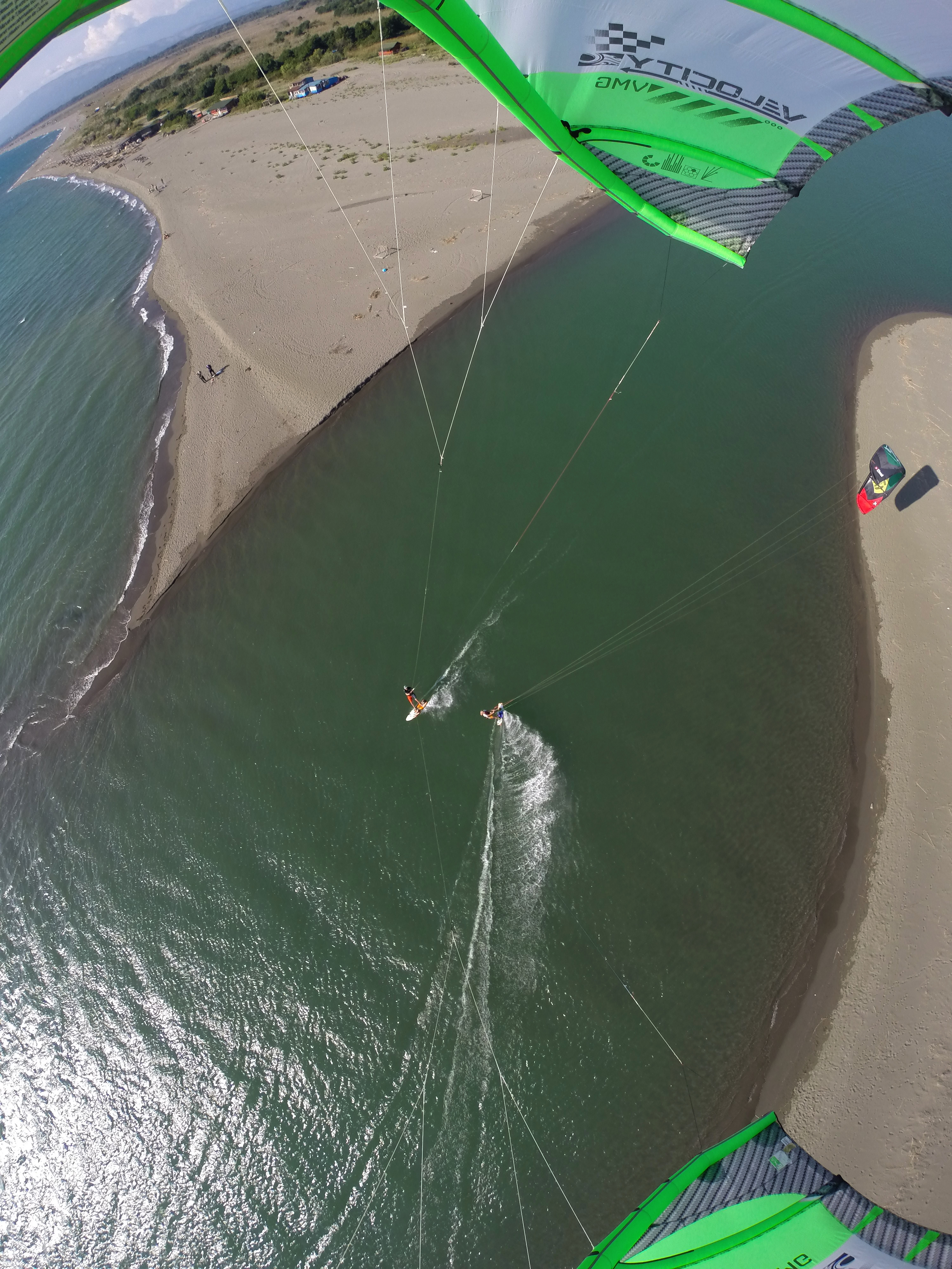 The flat water is world class but can fill up fast. I don’t know about the legality of it but when we were there I also ventured down to the river mouth at the far end of the island. Technically kiting in Albania but it had more space and a really glass flat lagoon. Probably best to check with the locals about that spot tho 😉